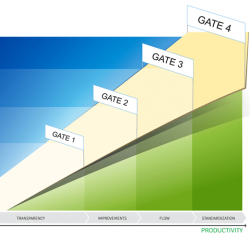 Before we start the project there is a preparations stage including process analysis, Positive Productivity Training, change management training, communication, goals set up, project management set up and etc. Then the team is ready to start the journey.